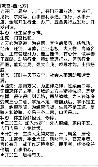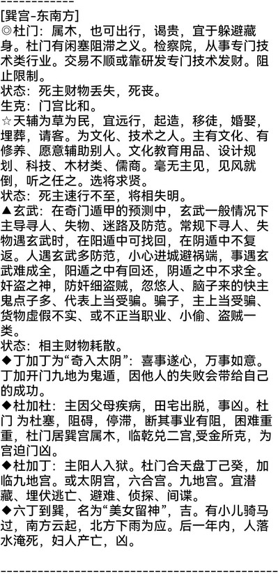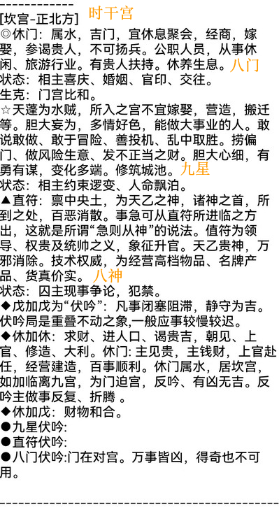 2.若问测特定的事项,例如问升官,专有用神为【值符】,问财运,专有用神为【生门】,问婚姻,专有用神为【六合】。