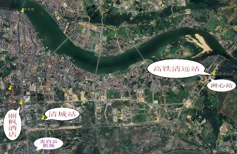 路线:1、坐高铁到清远站,出站口左边洲心站坐轻轨到清城站,离丽枫酒店两公里,打车到酒店。