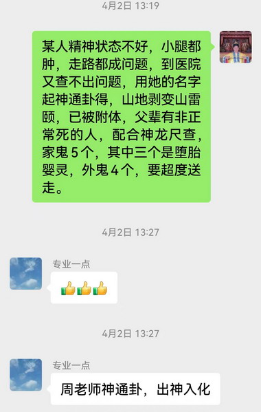 这些年很少将卦例写出来,其实我们断准了十个人,才有五六个人愿意做法事,做几百场法事,每场法事帮助几家人,要断准多少人。